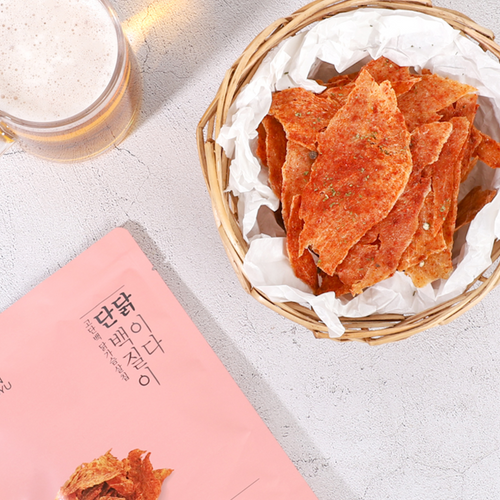 Chicken Breast Chips are a high-protein snack made with chicken breast, designed for convenient protein intake. Each pack contains 24g of protein, providing approximately 44% of the recommended daily intake. While preserving the clean, natural flavor of chicken breast, the chips deliver a light and crispy texture that anyone can enjoy without feeling heavy. They are baked, not fried, to reduce excess oil, resulting in a clean and mild taste that minimizes the heaviness often associated with protein snacks. Individually packaged for easy carrying and storage, Chicken Breast Chips are a convenient choice anytime, anywhere—ideal for those managing their diet or seeking a healthier snack option.